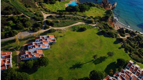 Eingebettet in die fantastische Klippenlandschaft der Felsenalgarve liegt die weitläufige Parkanlage mit verschiedenen Häusern und Villen, einige schlicht gehalten, andere luxuriös direkt über dem Strand gelegen.